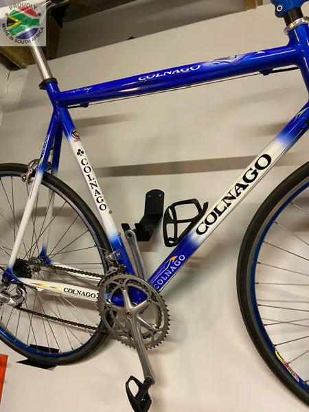 Show off and store your most prized possession—your bike! The Wall Mounted Bike Rack is a clever home storage solution that supports your bike by the pedal and tires, giving a clean, minimalist look. Its angled design allows bikes to be stored in tight spaces like hallways without cutting into floor space like traditional vertical bike racks. Coated hardware will not damage or mar your bike.