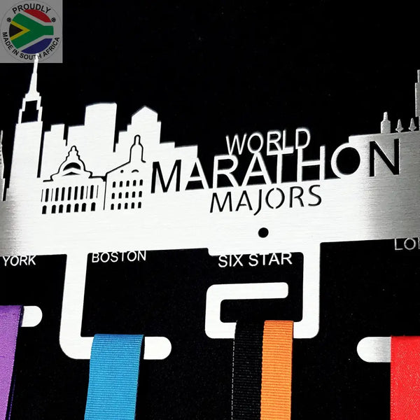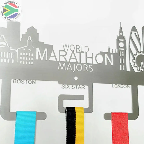 The Cityscape Design World Marathon Majors medal hangers has space for your 6 Marathon medals as well as the your 6 Star Finisher Medal once complete.